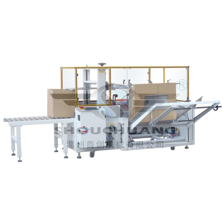 ● 自動化程度高:自動開箱、自動折合下蓋、自動密封下底膠帶,機器采用PLC+顯示屏控制,大大方便操作,是自動化規模生產的流水線設備。