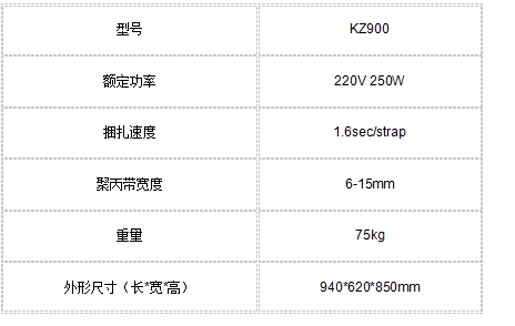 KZ900型半自動聚乙烯塑料帶為捆扎材料、主要用于商業、郵政、鐵路、銀行、食品、醫藥、書刊、發行等行業的紙箱、木箱、紙包件、柳編箱、布包件的包裝捆扎。在插入包裝帶后,機器能自動完成聚帶、百葉窗、熱合、切斷并出帶、且裝有自動停機之功能。工作速度快、效率高、省時省力、打包質量高。