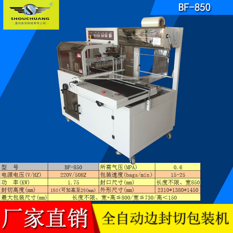 BF-450A系列邊封型全自動(dòng)封切機(jī)是一款自動(dòng)無人化操作的直線型封切機(jī),廣泛用于批量生產(chǎn)包裝的流水作業(yè),工作效率高,自動(dòng)送膜打孔裝置和手動(dòng)調(diào)節(jié)的導(dǎo)膜系統(tǒng)以及手動(dòng)調(diào)節(jié)的進(jìn)料輸送平臺(tái),適用不同寬度及高度的產(chǎn)品.