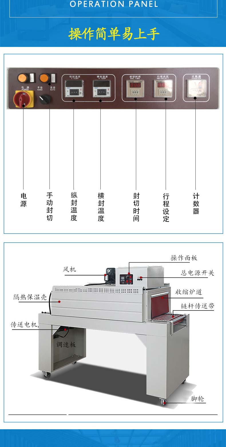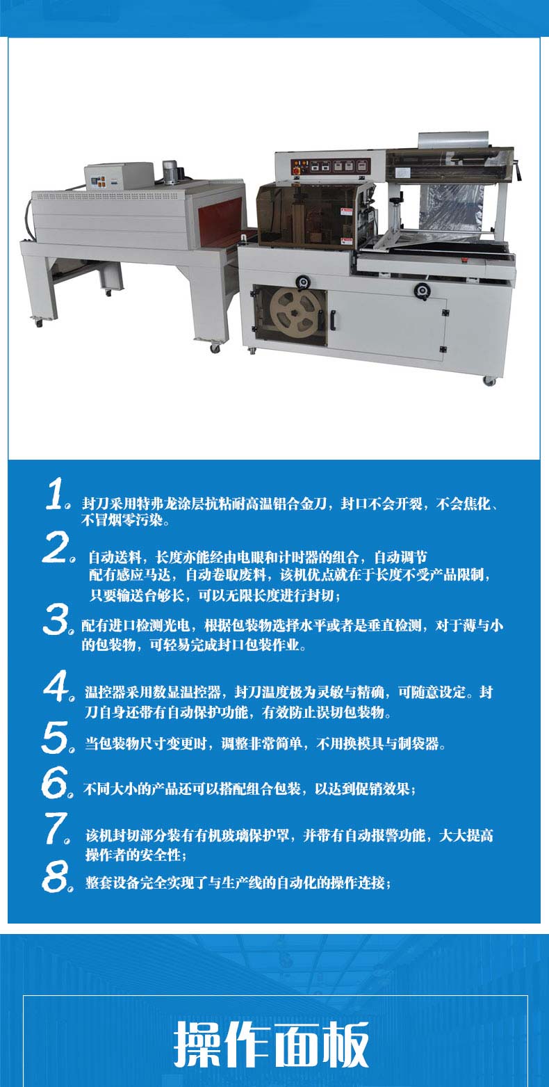 4、溫控器采用數(shù)顯溫控器,封刀溫度可控,可隨意設(shè)定。封刀自身還帶有自動(dòng)保護(hù)功能,有效防止誤切包裝物。