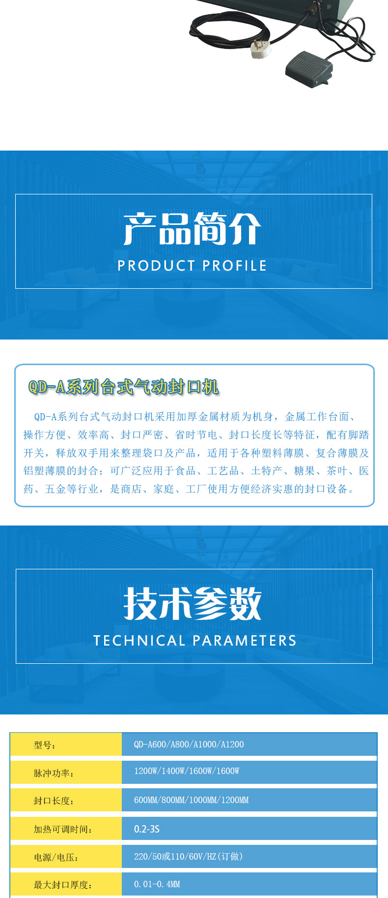 當前位置:首頁》產品展示》QD-800A臺式氣動封口機