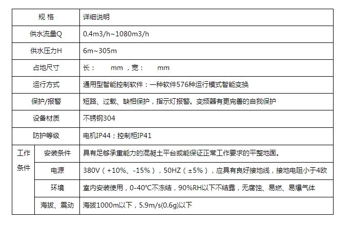 恒壓變頻供水設備產品規(guī)格: