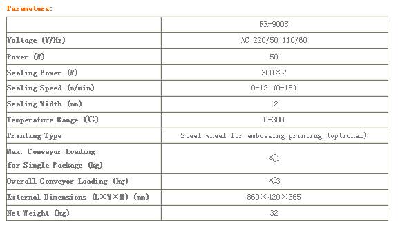 FR-900S series continuous band sealer is suitable for sealing small packages.
