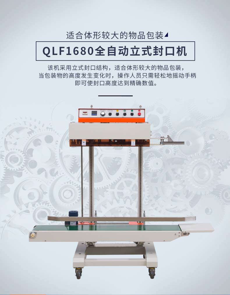 QLF-1680  series heavy-duty continuous band sealers are suitable for sealing packages that weigh under 15kgs respectively.