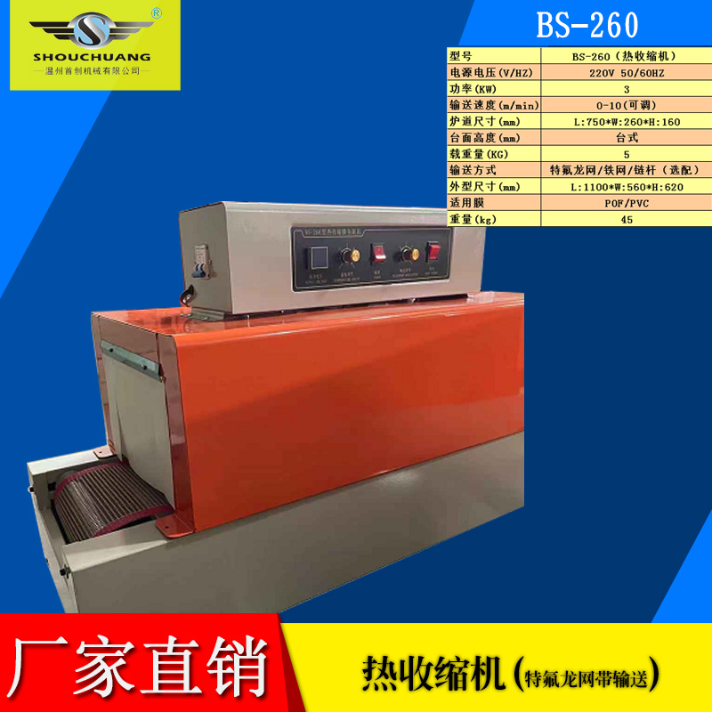 The current position:Home》Products》BS-260 Heat shrinkable film machine