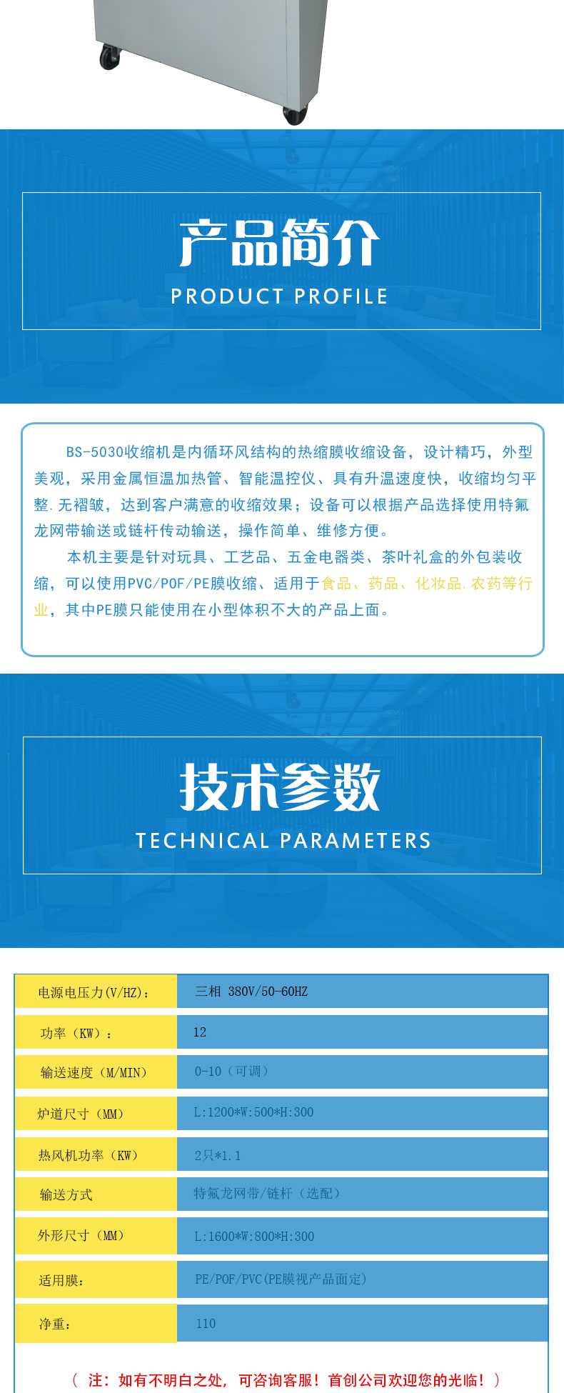 The current position:Home》Products》BS-5030Heat shrinkable film machine