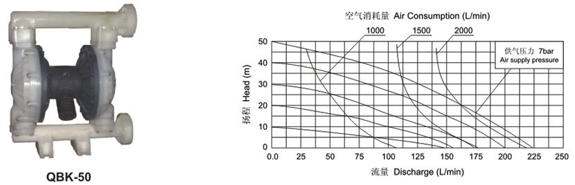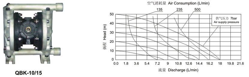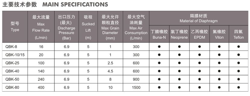 QBK第三代氣動(dòng)隔膜泵規(guī)格表: