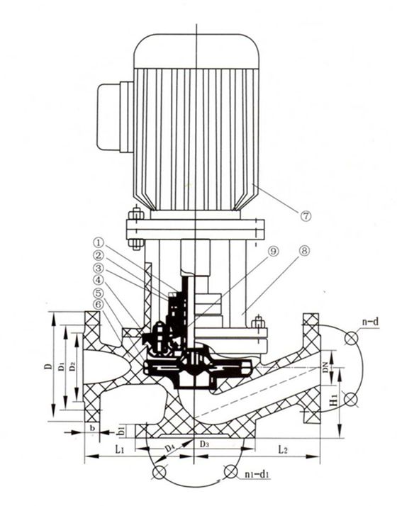 1 軸 2 軸套 3 機械密封 4 泵蓋 5 葉輪 6 泵體 7 電機  8 聯(lián)接架 9 密封壓蓋