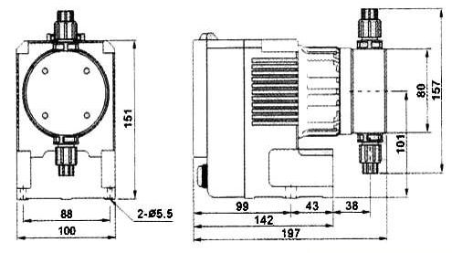 | 型號(hào) | 流量 L/H | 壓力 Bar | 沖程頻率 次/分鐘 | 功率 W | 進(jìn)出口徑 mm |