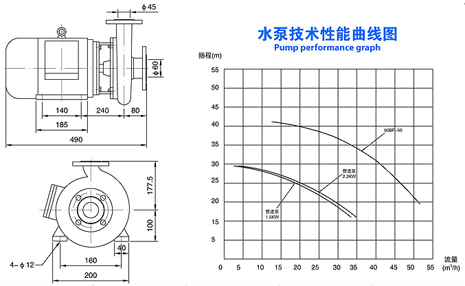 BF不銹鋼加藥泵(臥式管道泵)--技術(shù)參數(shù):